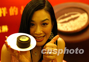 十三日晚,著名影星鐘麗緹在北京凱賓斯基飯店推介哈根達(dá)斯月餅冰淇淋。中新社記者:趙振清