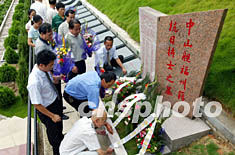 抗日戰(zhàn)爭(zhēng)勝利五十八周年之日,中山艦福州籍抗日將士之墓在福州三山陵園落成,八十八歲的中山艦幸存老兵邱奕殿與部分抗日將士家屬特地來到墓前,為遇難者獻(xiàn)上鮮花。1938年10月24日,在武漢保衛(wèi)戰(zhàn)中,中山艦遭六架日軍飛機(jī)轟炸,不幸沉沒,艦長(zhǎng)薩師俊等二十五名官兵血祭長(zhǎng)江,其中有二十二位是福州籍官兵。作者:祝敏松