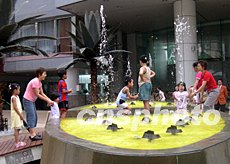 香港商場為顧客提供一個(gè)戶外活動(dòng)好地方。如今,為了吸引顧客,商場設(shè)施要?jiǎng)e樹一幟。十七日,顧客及游人在香港新都會(huì)廣場中央的一座別具特色的互動(dòng)噴池觀賞游玩。作者:譚達(dá)明