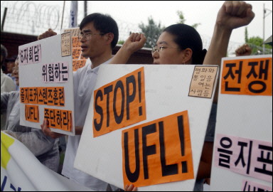 這一演習(xí)立即遭到了部分韓國(guó)民眾的抗議,這些民眾高舉著用韓文和英文書寫的“停止舉行乙焦演習(xí)”的醒目標(biāo)語聚集到駐韓美軍總部所在地--韓國(guó)漢城龍山美軍基地外,高呼立即停止軍演的口號(hào)。(徐冰川/聞新芳)