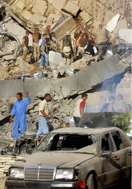 當(dāng)?shù)貢r(shí)間8月19日16:40左右(北京時(shí)間8月19日20:40左右),設(shè)在伊拉克首都巴格達(dá)運(yùn)河酒店的聯(lián)合國(guó)辦事機(jī)構(gòu)總部發(fā)生強(qiáng)烈爆炸,有證據(jù)表明爆炸是汽車(chē)炸彈造成的。在爆炸事件中,聯(lián)合國(guó)伊拉克問(wèn)題特別代表德梅洛受重傷。(春風(fēng))