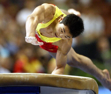 第三輪中國隊(duì)進(jìn)行的吊環(huán)比賽是相對弱項(xiàng),不過李小鵬、楊威和黃旭分別得到9.600、9.562和9.662分,本項(xiàng)目總分也達(dá)到28.824分,中國總分為85.635分,比排名第二的美國隊(duì)多出0.2分。