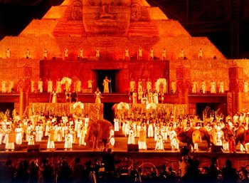 他透露,與傳統(tǒng)的悲傷結(jié)尾不同,此次演出為《阿依達(dá)》設(shè)計(jì)了一個(gè)富有東方情調(diào)的結(jié)尾,越到結(jié)束時(shí)氣氛越熱烈,燈光熄滅后金字塔上將點(diǎn)亮幾百個(gè)火把,成百上千的氣球和蝴蝶將飛向空中……