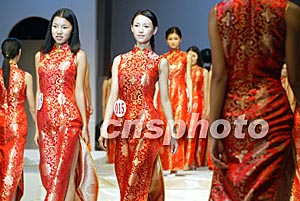 身著喜慶大紅旗袍的四十余名模特佳麗,二十三日在江西省會南昌市的T型臺上進(jìn)行緊張排練,她們將參加當(dāng)日舉行的新絲路模特大賽南昌賽區(qū)總決賽。中新社記者:毛建軍