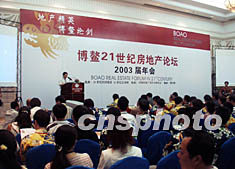 博鰲二十一世紀(jì)房地產(chǎn)論壇二00三屆年會(huì)二十三日在海南博鰲隆重開(kāi)幕,來(lái)自全國(guó)各地的房地產(chǎn)公司老總出席,論壇主題為“金融緊縮下的中國(guó)房地產(chǎn)。作者:莫成雄