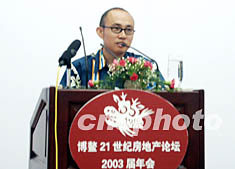 博鰲二十一世紀(jì)房地產(chǎn)論壇二00三屆年會(huì)二十三日在海南博鰲隆重開(kāi)幕,SOHO中國(guó)董事長(zhǎng)潘石屹在論壇上演講。作者:莫成雄