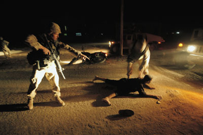 對(duì)美軍來說,另外一個(gè)重要的源是在巷戰(zhàn)中俘獲的伊拉克游擊分子。美國(guó)人會(huì)“蓄意”挑起沖突,請(qǐng)君入甕。譬如說,他們會(huì)將一輛沒有任何掩護(hù)的巡邏坦克開到可疑地區(qū)。伊拉克游擊分子見此“良機(jī)”,便會(huì)貿(mào)然出來行動(dòng)。坦克手鎖定伊拉克發(fā)動(dòng)進(jìn)攻的方位后,便迅速請(qǐng)求支援。美軍會(huì)包圍住整個(gè)街區(qū),特種分隊(duì)對(duì)游擊分子藏身之地發(fā)動(dòng)強(qiáng)攻。當(dāng)然,所有被俘的伊拉克人都被認(rèn)為是薩達(dá)姆的“同黨”,是薩達(dá)姆資助他們進(jìn)行抵抗行動(dòng)。所以,這些俘虜均被拷問,讓他們供出從何人手中得到買武器的錢!