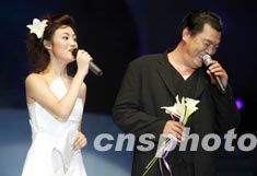 香港著名藝人“大傻”成奎安二十三日晚在2003年中國南昌新絲路模特大賽上擔當主持人,與當地的女主持人同臺亮相時似乎還有些“靦腆”。許多被內地觀眾熟悉的香港藝人近年來頻頻北上,開拓內地市場之勢強勁。中新社記者:毛建軍