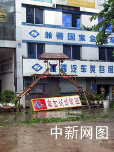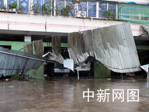 受其影響,海南省會?谑惺袇^(qū)出現(xiàn)一年來最大風災,許多建筑遮陽棚被毀。