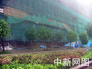 受其影響,海南省會?谑惺袇^(qū)出現(xiàn)一年來最大風災,一座在建的商住樓,建筑防護網(wǎng)被刮得七零八落。