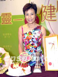 影視紅星汪明荃8月26日出席香港電臺節(jié)目“精靈一點‧健康一點”記者會,曾患癌癥的汪明荃將擔(dān)任節(jié)目主持,將向聽眾提供癌癥的信息。圖為汪明荃快將生日獲港臺送上生日蛋糕、鮮花等禮品。作者:鄧慶樂