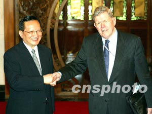 中新網(wǎng)8月29日電 中國國務(wù)委員唐家璇今天(29日)中午在釣魚臺國賓館會見了出席北京六方會談各方代表團。據(jù)官方消息,唐家璇說,本次六方會談受到國際社會的高度關(guān)注,各國人民均對會議寄以期望,尤其是東北亞各國都希望本地區(qū)和諧安寧,盼望朝鮮半島早日走出冷戰(zhàn)陰影,實現(xiàn)持久的和平與穩(wěn)定。