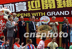 香港財政司司長唐英年八月三十一日在香港沙田馬場為新賽季開鑼,開鑼日三T彩金高達一億八千萬吸引眾多馬迷和內地游客投注。中新社記者:潘索菲