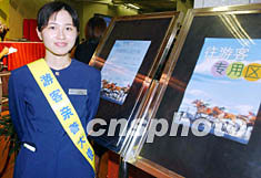 香港沙田馬場在八月三十一日新賽季開鑼日,首次開設游客專用區(qū),讓內地自由行游客參與投注獲勁賞。圖為沙田馬場的游客親善大使。中新社記者:潘索菲