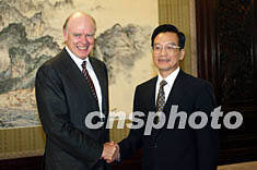 中新網(wǎng)北京9月3日電(記者齊彬)中國國務(wù)院總理溫家寶今天下午在中南海紫光閣會(huì)見了到訪的美國財(cái)政部長斯諾一行。