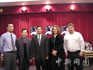 中國京劇《白蛇傳》首次參加澳大利亞多元文化藝術(shù)節(jié),將于9月25日至28日在悉尼連演4天,并于29日在堪培拉演出1天。中國京劇院將派出46位藝術(shù)家來澳演出。圖為中國駐悉尼總領(lǐng)事廖志洪(中),劉大衛(wèi)(左1),著名僑領(lǐng)周光明(左2),藝術(shù)節(jié)董事會主席瑪賽羅斯(女)和藝術(shù)總監(jiān)曼尼迪斯在新聞發(fā)布會上合影。中新社記者 劉雨生 攝