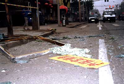 據(jù)北京娛樂信報報道,肉餅店臨街的一扇門和三個窗戶全部被炸碎,馬路中間全是炸飛的碎玻璃,并有門窗框被炸飛到馬路對面。酒吧和肉餅店的所有窗戶都被炸壞。