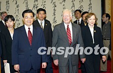 卡特表示他很高興有機會再次訪華同胡主席結(jié)識,他回顧了一九七九年他同鄧小平副總理歷史性的會晤以及后來觀摩中國村民委員會成功進(jìn)行選舉的經(jīng)歷,他還介紹了卡特中心在許多國家開展的工作。