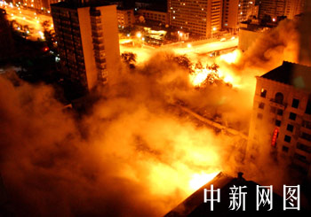 中新網(wǎng)北京9月9日電(記者阮煜琳)九月九日凌晨一點(diǎn),北京長安街上中華全國總工會(huì)大樓隨著一聲巨響轟然倒塌,厚厚的煙塵在夜空中騰起,坐鎮(zhèn)爆破指揮部的中華全國總工會(huì)服務(wù)中心基建處處長郭德宏興奮地告訴記者,爆破非常成功。