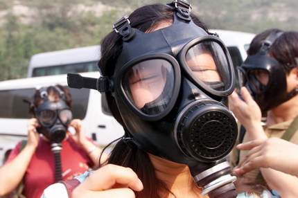 在“中方協(xié)助團”防化專家的帶領(lǐng)下,記者穿戴好一整套厚重嚴(yán)密的防化服,戴好防毒面具,經(jīng)過作業(yè)保障區(qū),接受過防毒面具氣密性檢測后,進入被稱為“高毒、高爆、高危險”的作業(yè)污染區(qū)。
