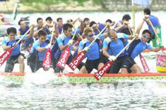 2003年亞太城市龍舟邀請賽決賽及小龍公開賽決賽十四日在澳門西彎人工湖舉行,澳門理工學(xué)院職業(yè)技能培訓(xùn)中心獲得男子總決賽冠軍。中新社記者:李剛