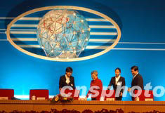第六屆中國(guó)北京國(guó)際科技產(chǎn)業(yè)博覽會(huì)九月十五日在北京閉幕,國(guó)務(wù)院副總理吳儀(左二)、中共北京市委書記劉淇(右)等參加閉幕會(huì)。中新社記者·:張宇