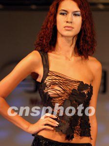 香港服裝設(shè)計(jì)協(xié)會(huì)副主席馬偉明設(shè)計(jì)的前衛(wèi)女內(nèi)衣,十七日在青島國際時(shí)裝周上展示。中新社記者:宋吉河