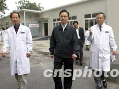 中共北京市委副書記龍新民(中),9月18日到北京協(xié)和醫(yī)院等醫(yī)療機構檢查落實北京市嚴防SARS緊急預案落實情況。中新社記者:任晨鳴