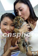 參加第五十三屆世界小姐中國總決賽的小姐們,十八日在三亞表演“幼虎秀”。中新社記者:毛建軍