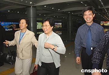 九月二十一日,出席第二屆世界華文傳媒論壇的國務(wù)院僑辦主任陳玉杰(中)抵達(dá)長沙,中國新聞社總編輯郭招金(右)等人前往機(jī)場(chǎng)迎接。中新社記者:武仲林
