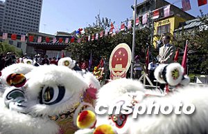 舊金山華僑華人慶祝中國(guó)國(guó)慶委員會(huì)九月二十日在華埠舉行升五星紅旗慶中國(guó)國(guó)慶儀式,中國(guó)駐舊金山總領(lǐng)事王云翔參加升旗儀式。作者:陳鋼