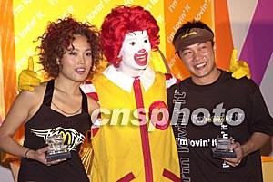 歌星陳奕迅、容祖兒9月23日在香港出席麥當(dāng)勞全球性的“i’m Iovin’ it”品牌推廣活動(dòng)記者會(huì),陳奕迅、容祖兒將為香港區(qū)麥當(dāng)勞為配合全球性電視廣告推出的“i’m Iovin’ it”廣告片主唱粵語(yǔ)版主題歌。作者:鄧慶樂(lè)