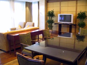 酒店每個房間均有獨(dú)立的更衣室,自動紅外照明感應(yīng),自動恒溫空調(diào),可以根據(jù)客人的習(xí)慣自動記憶亮度及溫度,柚木厚重的家俬與三十多頻道多語言衛(wèi)星電視、寬帶上網(wǎng)接口實(shí)現(xiàn)了傳統(tǒng)與時尚的統(tǒng)一?头績(nèi)法式浴缸與臥室之間以軟簾相隔斷,拉開軟簾推開陽臺,就是南海咸濕滋潤的空氣,客人可以邊沐浴邊欣賞博鰲水天一色的美景。