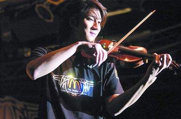 身穿黑色T恤、藍(lán)色休閑褲、留著一頭金黃色飄逸長(zhǎng)發(fā)的王力宏,一出場(chǎng)就惹得臺(tái)下觀眾們的歡呼。接著,他傾情演唱了活動(dòng)主題曲《我就喜歡》以及經(jīng)典老歌《龍的傳人》,其間更是大顯其他方面的音樂(lè)才能,用小提琴演奏了一段《愛(ài)的就是你》,將宣傳會(huì)帶入高潮。
