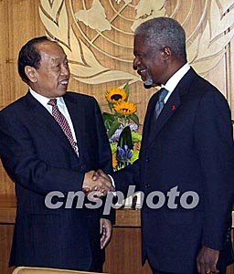 安南感謝中國多年來對聯(lián)合國的有力支持,高度評價了中國在解決全球性問題,特別是在實現(xiàn)聯(lián)合國千年發(fā)展目標(biāo)方面發(fā)揮的建設(shè)性作用。他還對中國成功控制“非典”表示祝賀,贊揚中國為全球防治艾滋病作出了貢獻。