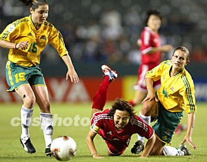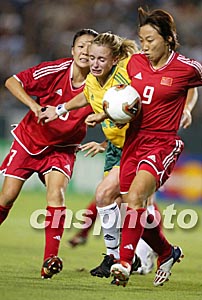 美國(guó)當(dāng)?shù)貢r(shí)間9月25日19點(diǎn),參加2003年第四屆女足世界杯D組比賽的中國(guó)隊(duì)在洛杉磯南部卡森的The Home Depot Center體育場(chǎng)舉行小組賽的第二場(chǎng)比賽,對(duì)手是澳大利亞隊(duì)。上半場(chǎng)中國(guó)隊(duì)先失一球,下半場(chǎng)開場(chǎng)白潔將比分扳平。隨后,中國(guó)隊(duì)占有優(yōu)勢(shì)但沒能抓住機(jī)會(huì)擴(kuò)大戰(zhàn)果。作者:劉占坤