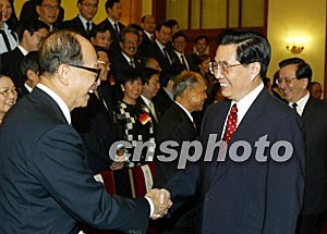 中新社北京九月二十七日電(記者邢利宇)中國(guó)國(guó)家主席胡錦濤今天下午在人民大會(huì)堂會(huì)見(jiàn)了以霍英東為團(tuán)長(zhǎng)的香港工商界知名人士訪京團(tuán)。