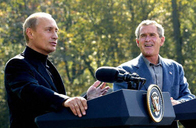 布什和普京還就雙邊關(guān)系、車臣局勢(shì)、中東沖突以及反恐等問題發(fā)表了看法并回答了提問。