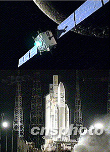 歐洲第一個月球探測器“靈敏-1”號,于北京時間周日上午7點14分搭乘歐洲“阿麗亞娜-5”型火箭從法屬圭亞那地區(qū)庫魯航天中心成功發(fā)射升空。與“靈敏-1”號同時發(fā)射升空的還有兩枚商用衛(wèi)星。預計15個月后,重370公斤的“靈敏-1”號探測器,將到達繞環(huán)月軌道,在月球軌道上工作30個月。中新社圖