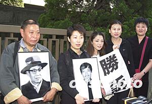 法庭內(nèi),判決結(jié)果只宣布到一半,日本律師團的幾位年輕辯護律師就已經(jīng)抑制不住激動地舉起拳頭,有的還興奮地和在場中國原告握起手。不懂日語的原告李臣在弄明白判決結(jié)果后,頓時百感交集,淚水橫流。小姑娘劉敏懷抱著父親的遺像早已泣不成聲。而此時旁聽席上也響起了掌聲和叫好聲,使判決書的宣讀中斷了數(shù)秒。