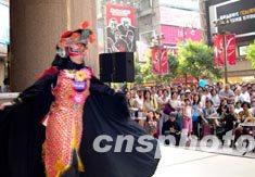 香港時代廣場10月1日舉辦文藝表演慶祝國慶節(jié),香港女藝人的“變臉”技藝,令觀眾大開眼界。中新社記者:洪少葵