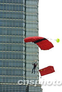 組圖:上海金茂大廈上演“中華第一跳傘”