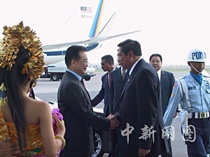 中新網(wǎng)10月6日電(記者齊彬)中國國務院總理溫家寶于當?shù)貢r間6日下午2時35分抵達印尼巴厘島出席第七次東盟與中日韓(10+3)領導人會議、東盟與中國(10+1)領導人會議及第五次中日韓領導人會晤。