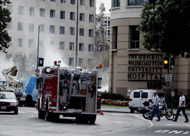 發(fā)生大火的街道位于喬治·華盛頓大學(xué)醫(yī)院的新樓和舊樓之間,距離白宮不到一公里。大火發(fā)生后,這家醫(yī)院的工作人員疏散了非急需的工作人員和來訪者,并把重點護(hù)理病人轉(zhuǎn)移到離大火最遠(yuǎn)一側(cè)的病房。