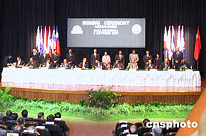 中新網(wǎng)巴厘島10月8日電(記者齊彬)中國外交部長李肇星八日在這里與東盟十國外長簽署文件,宣布中國正式加入《東南亞友好合作條約》,從而使中國成為東南亞地區(qū)以外第一個加入該條約的大國,中國國務(wù)院總理溫家寶與東盟十國領(lǐng)導(dǎo)人共同出席了簽字儀式。