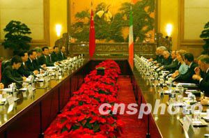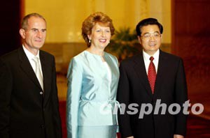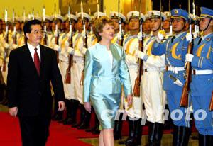 會(huì)談前,胡錦濤主席為麥卡利斯總統(tǒng)訪華舉行了歡迎儀式。