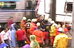 中新網(wǎng)10月14日電臺北縣鶯歌鎮(zhèn)今日上午7時38分傳出火車沖撞載游覽車的意外,游覽車上載了樹林育林高中的高中生,初步已知至少有20多人受到輕傷,已送往醫(yī)院救治,現(xiàn)場消防人員還在搶救。