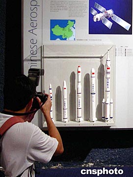 萬眾注目的“神舟”五號飛船10月15日發(fā)射成功,引起香港民眾對太空知識的濃厚興趣,太空館展出了長征火箭模型,向觀眾介紹中國航天發(fā)展的輝煌歷程。作者:洪少葵