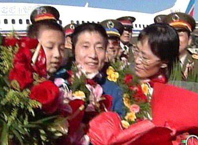 總裝備部、國防科工委、信息產(chǎn)業(yè)部、中國科學(xué)院、航天科技集團(tuán)公司有關(guān)領(lǐng)導(dǎo)和載人航天工程各大系統(tǒng)的代表出席了迎接儀式。楊利偉的妻子張玉梅也同時(shí)在機(jī)場迎接。