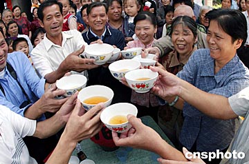 輔翼村的鄉(xiāng)親們用各種方式表達對航天載人工程的功臣黃春平的熱愛和慶賀,村里會用毛筆的幾個人,昨天都在揮毫潑墨,一條歡呼“神舟”五號發(fā)射成功的大紅標語掛在村大禮堂前。四條紅色喜聯(lián)也被敲鑼打鼓的人送到了黃春平的家中。黃春平的弟弟妹妹們這幾天一直沉浸在幸福的喜悅中。黃春平的弟弟黃春光把精心釀制的一壇青紅酒端出來讓鄉(xiāng)親們喝,共同分享他家的歡樂。